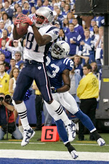 Feeley was 27 of 42 for 345 yards with 3 TD's and 3 INT's. Other than Lewis, Kevin Curtis was the other receiving threat (5 catches for 71 yards). Brady finished 34 of 54 for 380 yards with the one touchdown. Maroney had 31 yards on just 10 carries. If Samuel was the defensive player of the game, Wes Welker got the game ball for his efforts on offense. He was unstoppable out of the slot, on short passes. He caught a career-high 13 passes for 149 yards, which is the second-highest total for a game in Pats history (behind Troy Brown's 16 in 2002). Gaffney had six catches for 87 yards, Stallworth had four catches for 57 yards.